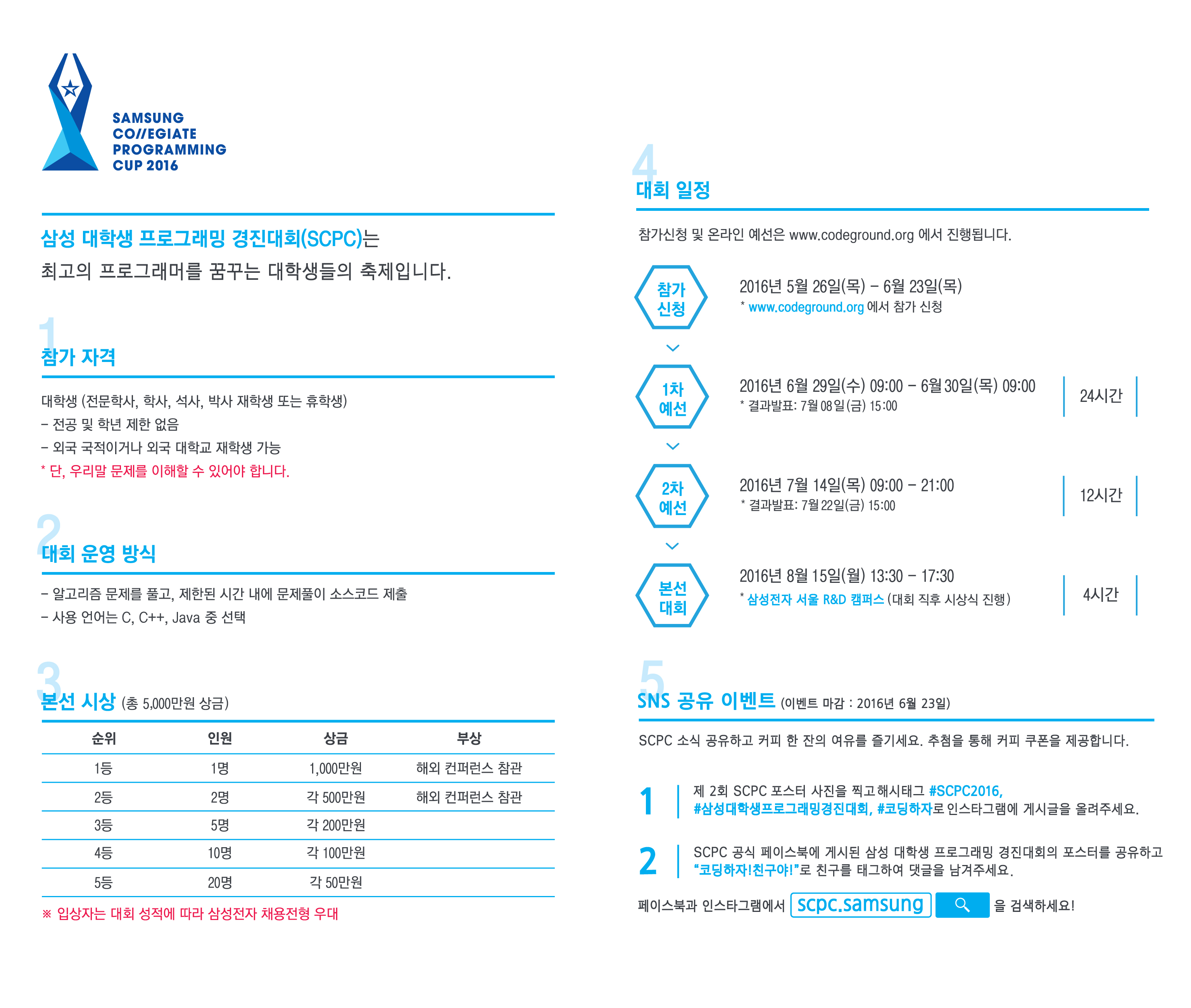 삼성전자가 전국 대학생들을 대상으로 제2회 ‘삼성 대학생 프로그래밍 경진대회(SCPC:Samsung Collegiate Programming Cup)’를 개최한다.