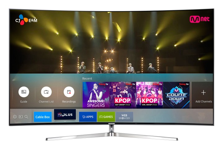 삼성전자는 CJ E&M의 ‘tving TV’ 채널 ‘엠카운트다운(M Countdown)’, ‘가창력 끝판왕(Awesome Singers)’, ‘HOT 보이그룹 특집(K-POP Boy group Stage)’, ‘HOT 걸그룹 특집(K-POP Girl group Stage)’의 케이팝 채널 4개로 TV플러스 서비스를 시작했다.