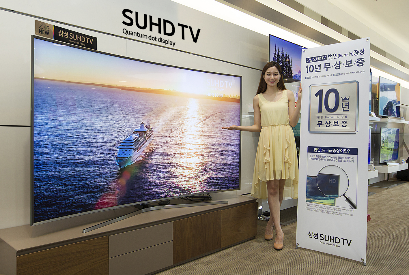 삼성전자가 2016년형 퀀텀닷 SUHD TV 구매 고객을 대상으로 화면 '번인(Burn-in)'에 대해 10년간 무상보증 프로그램을 시작했다.