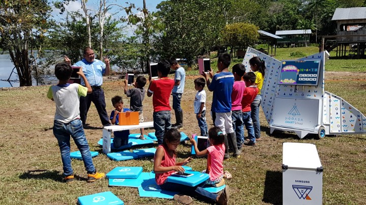 삼성전자는 7일(현지시간) 콜롬비아 보고타에서 현지 주요 NGO, 언론, 임직원 등이 참석한 가운데 이동성을 강화한 새로운 개념의 ‘스마트 스쿨 노마드(Smart School Nomad)’ 프로젝트를 소개했다.