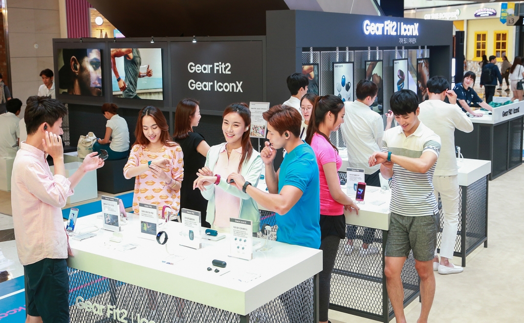 삼성전자는 15일부터 17일까지 여의도 IFC몰에 피트니스 컨셉의 이색 체험 공간을 만들고, 선에서 완전히 자유로워진 혁신적 디자인의 웨어러블 이어셋 ‘기어 아이콘X’와 자체 GPS를 탑재해 더욱 정확해진 ‘기어 핏2’를 소비자들이 직접 경험할 수 있게 했다.