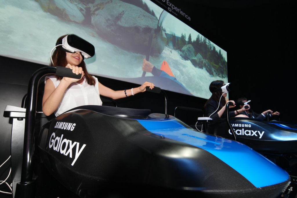 ▲갤럭시 언팩 참석자들이 기어 VR과 기어 360을 체험하는 모습
