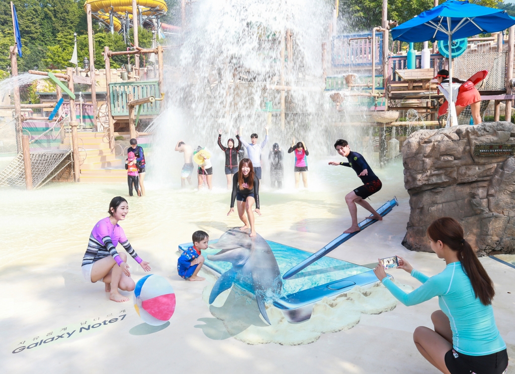 삼성전자가 ‘갤럭시 노트7’의 국내 출시를 앞두고 경기도 용인에 위치한 워터파크 캐리비안 베이에서 이색 옥외 광고 캠페인을 실시한다.