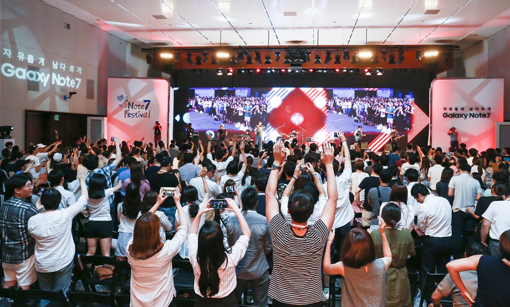 삼성전자는 지난 17일 저녁 삼성전자 서초사옥 다목적홀에서 ‘갤럭시 노트7’을 사전 구매하거나 예약한 고객 중 선발된 앰버서더 등 약 500여 명이 참석한 ‘노트7 페스티벌’ 행사를 진행했다.