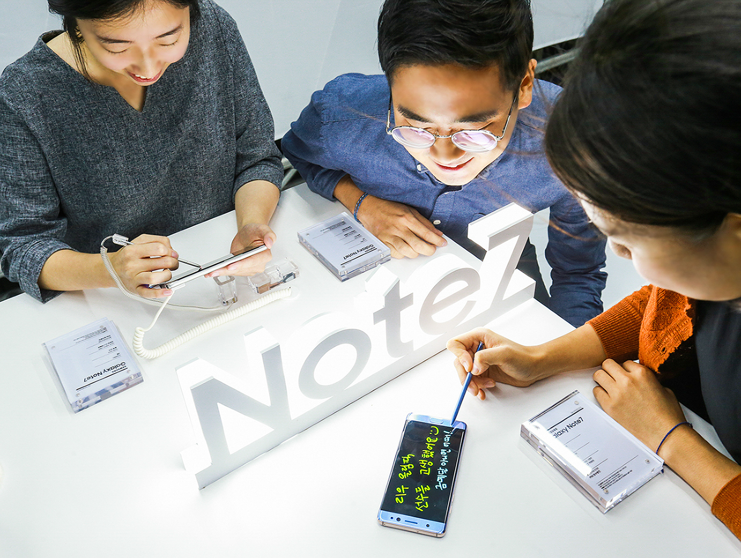 이벤트 부스에서 소비자들이 ‘갤럭시 노트7’의 ‘S펜’으로 직접 손글씨 메시지를 작성하는 모습