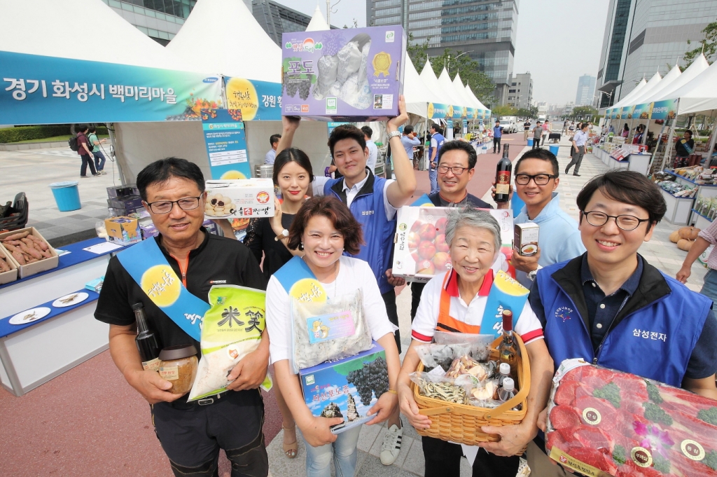 삼성전자는 6일 수원디지털시티에서 삼성 계열사들과 자매결연을 맺은 자매마을 농민들과 함께 ‘추석맞이 자매마을 농축산물 직거래 장터’를 열었다.