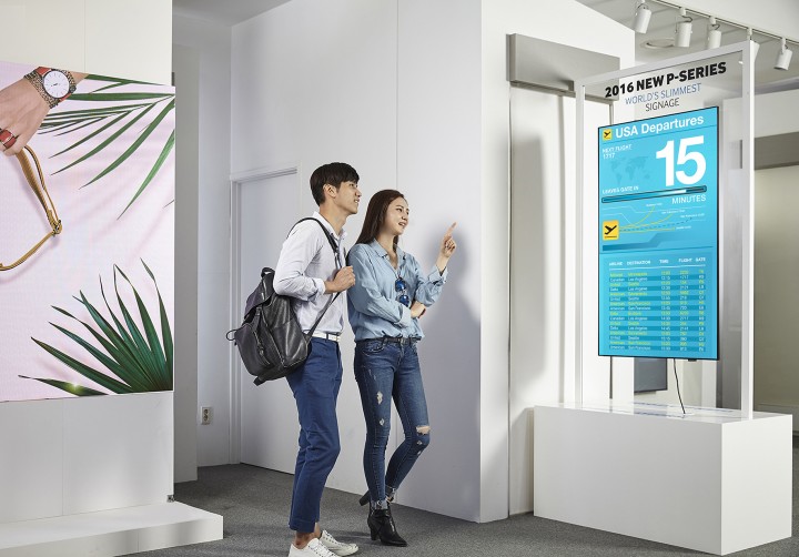 타이젠 스마트 사이니지는 29.9mm의 최소 두께를 구현하면서도 6.9mm의 초슬림 베젤 디자인이 적용됐다.