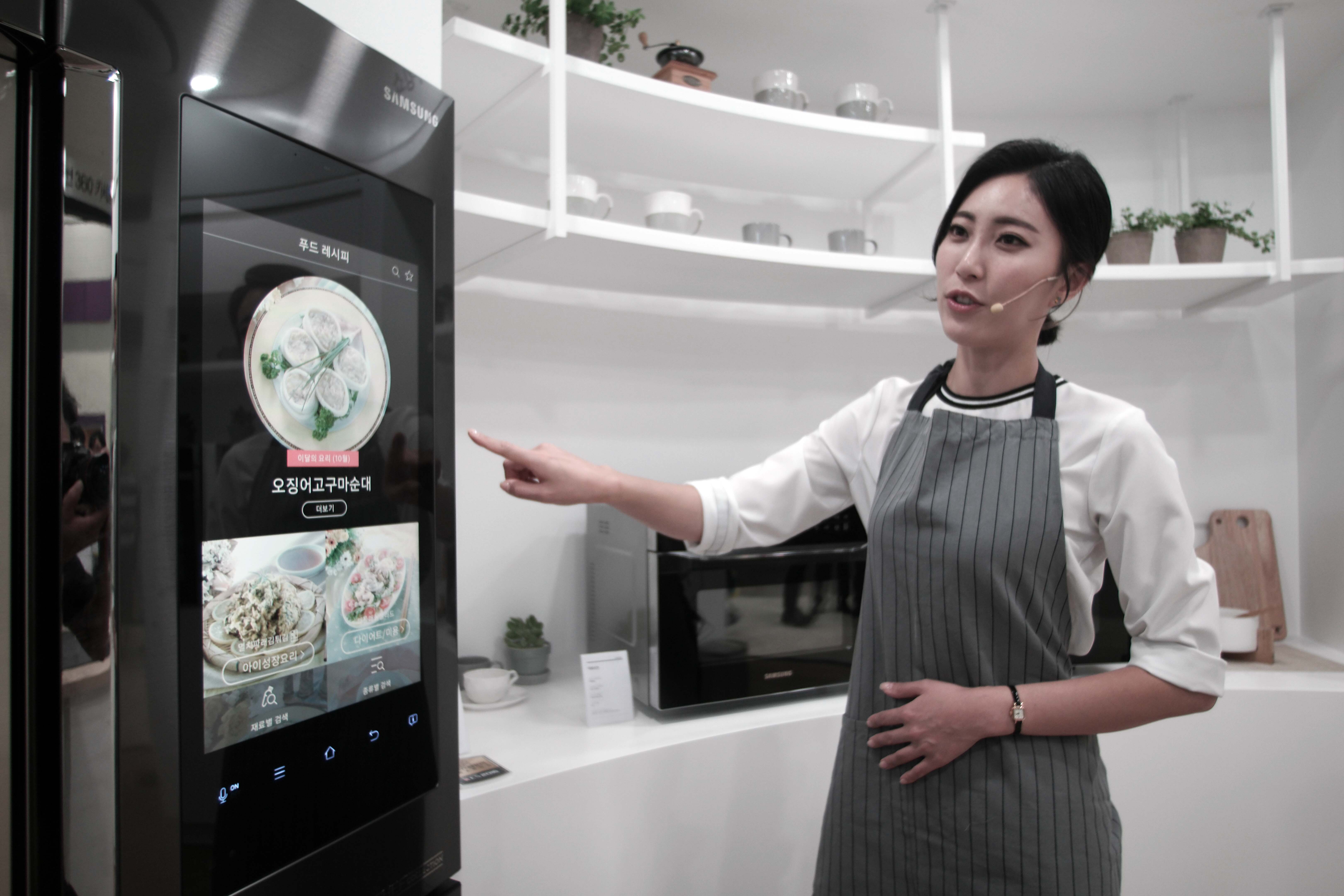 삼성전자가 29일 서울 코엑스에서 열리는 'KES 2016(Korea Electronics Show 2016, 한국전자전)'에서 패밀리 허브, 셰프컬렉션 인덕션 전기레인지, 직화오븐 등 다양한 프리미엄 가전 제품을 활용해 쿠킹쇼를 선보였다.