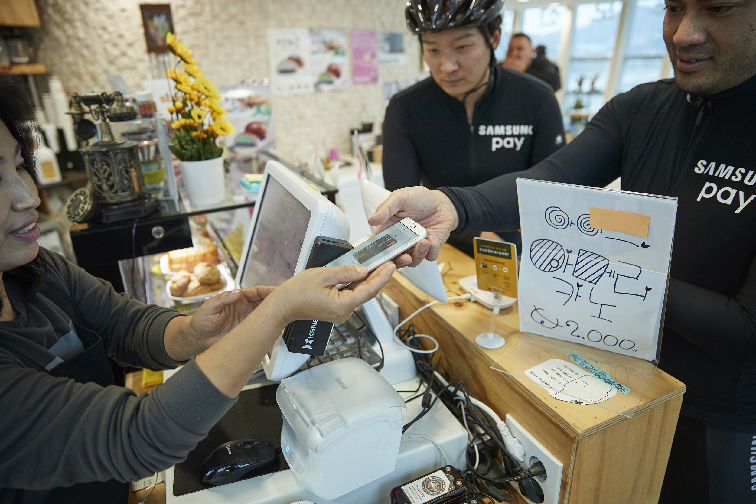 삼성전자 임직원들이 4일 동안 서울에서부터 부산까지 사이클로 종주하는 동안 지갑 없이 삼성 페이만을 이용해 결제하는 'Samsung Pay on the Road' 프로젝트를 진행했다.