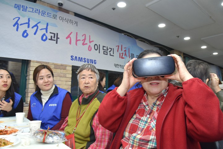 삼성전자가 25일 인천 사할린 동포 복지회관에서 삼성 지펠아삭 김치냉장고와 함께하는 ‘메탈그라운드 김장축제’를 열었다.