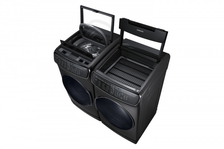 ‘플렉스워시’는 상부에 소용량 전자동 세탁기와 하부에 대용량 드럼형 세탁기를, ‘플렉스드라이’는 상부에 소용량 건조기와 하부에 대용량 건조기를 일체형으로 디자인한 혁신적인 제품이다.