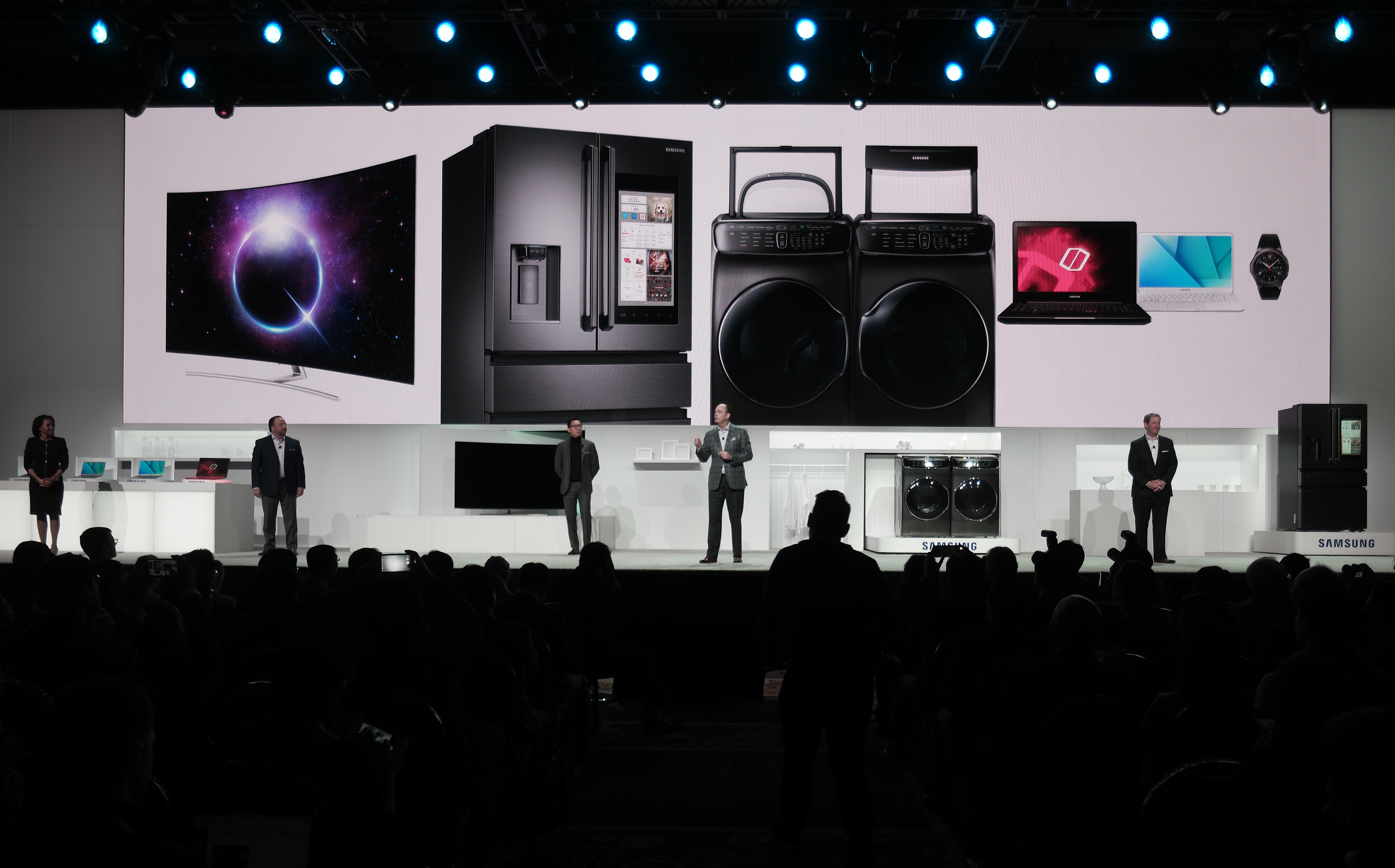 미디어와 업계 관계자 약 1,500명이 행사장을 가득 채운 가운데, 삼성전자는 ▲ IoT 연결성 강화, ▲ 메탈 퀀텀닷 기술이 적용된 삼성 QLED TV, ▲ ‘플렉스워시’와 ‘플렉스드라이, ‘패밀리허브 2.0’ 등 혁신 가전 제품, ▲기어 S3 를 중심으로 한 웨어러블 파트너십 등을 선보였다.