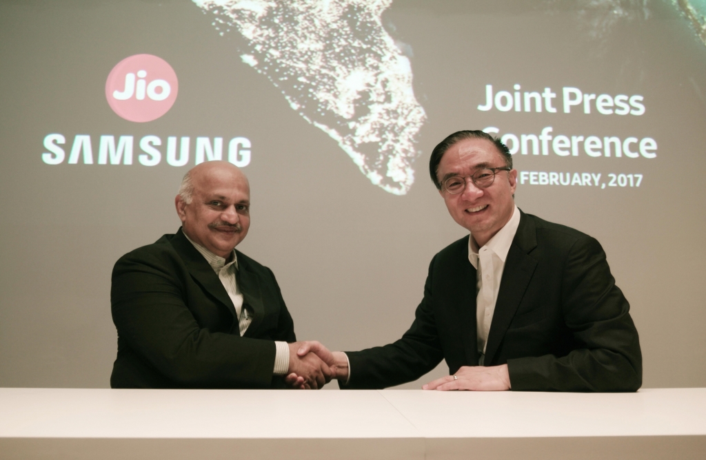 삼성전자는 스페인 바르셀로나에서 진행되고 있는 세계 최대 이동통신 박람회 MWC 2017에서 인도 LTE 통신사업자인 ‘릴라이언스 지오 인포컴(Reliance Jio Infocomm, 이하 ‘지오’)’과 공동 프레스 컨퍼런스를 개최하고, 파트너십 성과와 향후 계획을 밝혔다.
