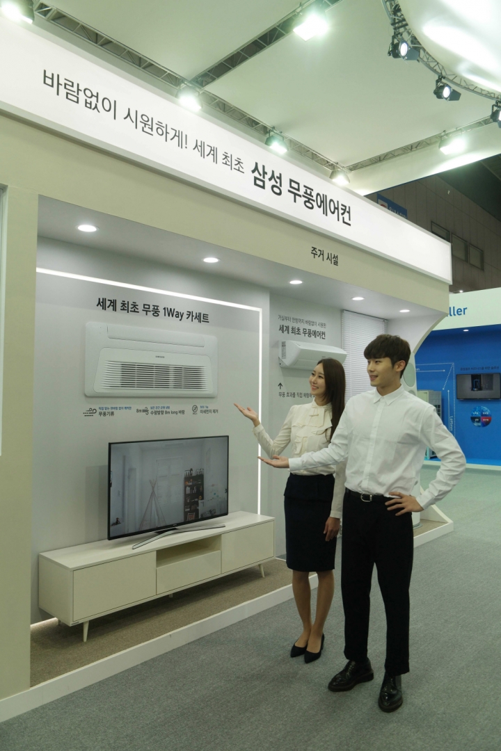 삼성전자는 이번 공조전에서 ‘무풍에어컨’의 ‘무풍 냉방’ 기술을 시스템에어컨으로 확대 적용한 ‘무풍 1 Way 카세트’를 국내에서 처음으로 공개하는 등 에어컨 시장을 새롭게 변화시킨 최첨단 공조기기를 선보인다.