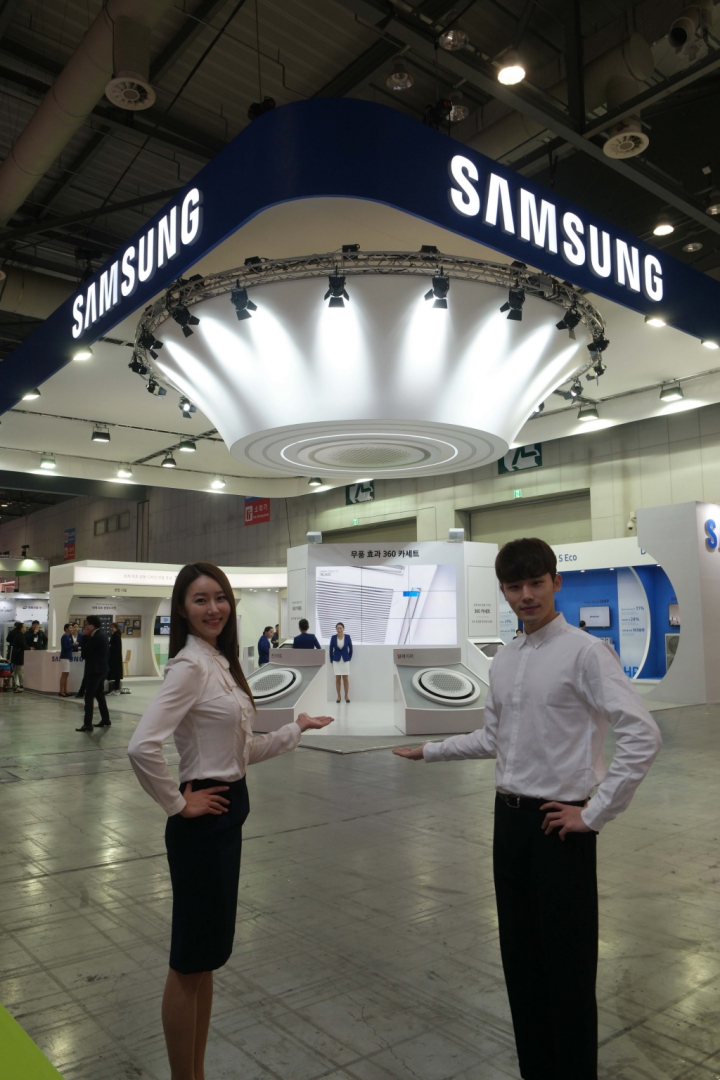삼성전자는 이번 공조전에서 ‘무풍에어컨’의 ‘무풍 냉방’ 기술을 시스템에어컨으로 확대 적용한 ‘무풍 1 Way 카세트’를 국내에서 처음으로 공개하는 등 에어컨 시장을 새롭게 변화시킨 최첨단 공조기기를 선보인다.