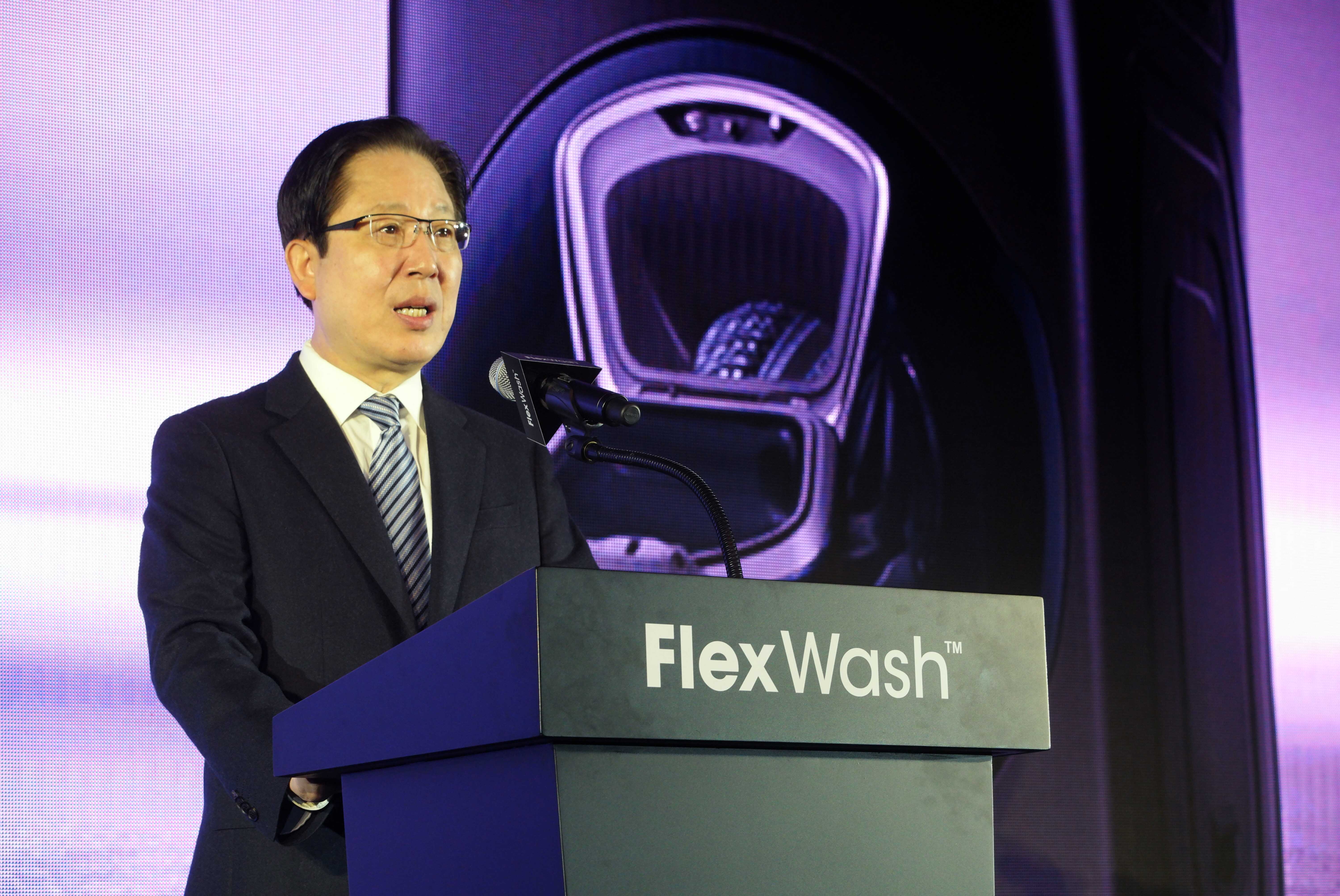 삼성전자가 9일 삼성전자 서초사옥 다목적홀에서 2015년 ‘액티브워시’, 2016년 ‘애드워시’에 이어 세탁기 시장의 흐름을 바꿀 ‘플렉스워시’의 출시를 알리는 미디어데이를 개최했다.