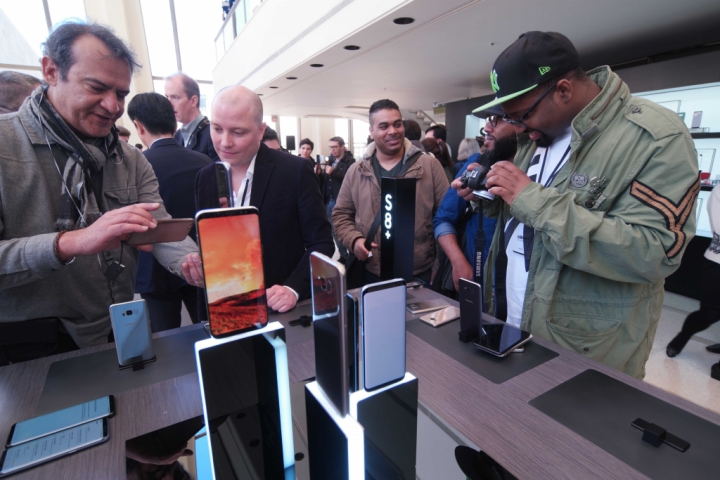 삼성전자가 현지시간 29일 미국 뉴욕 링컨센터(Lincoln Center)에서 '삼성 갤럭시 언팩 2017'을 열고, 전략 스마트폰 '갤럭시 S8'과 '갤럭시 S8+', 360도 촬영이 가능한 카메라 '기어 360' 신제품을 공개했다.