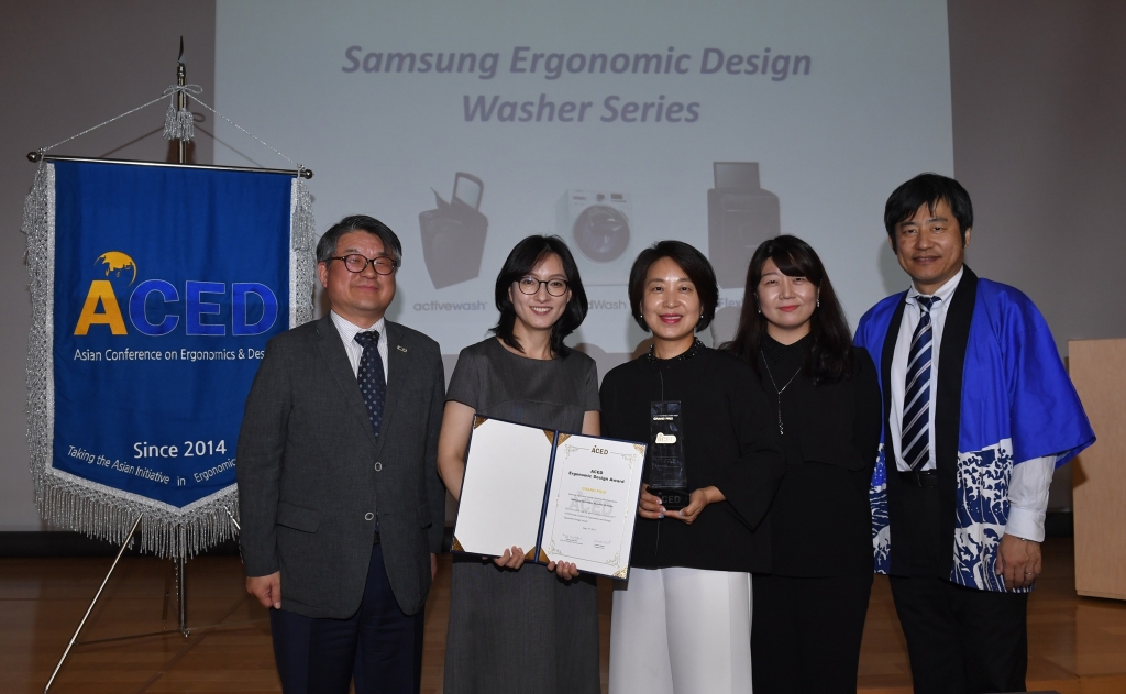삼성전자의 인간공학 세탁기 시리즈 ‘플렉스워시’, ‘애드워시’, ‘액티브워시’가 3일 일본 도쿄 니혼대학교에서 개최된 아시아인간공학회(ACED; Asian Conference on Ergonomics and Design) 주관 ‘2017년 인간공학 디자인상’에서 가전부문 그랑프리를 수상했다.