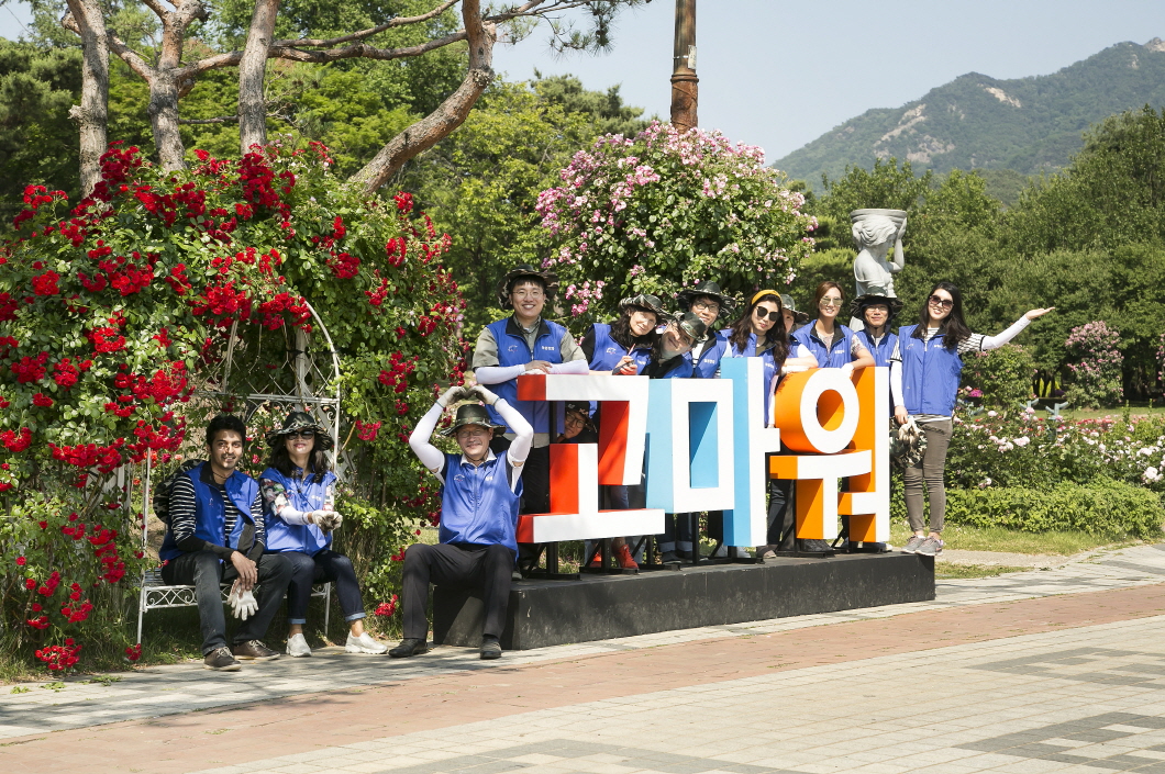 서울 우면동에 위치한 ‘삼성 서울 R&D 캠퍼스’ 임직원들은 5월부터 11월까지 서울대공원 테마가든 내 장미원 잔디 광장에 계절 꽃을 심고 벤치를 제작·설치해 8000m2 규모의‘休가든’을 조성할 계획이다.