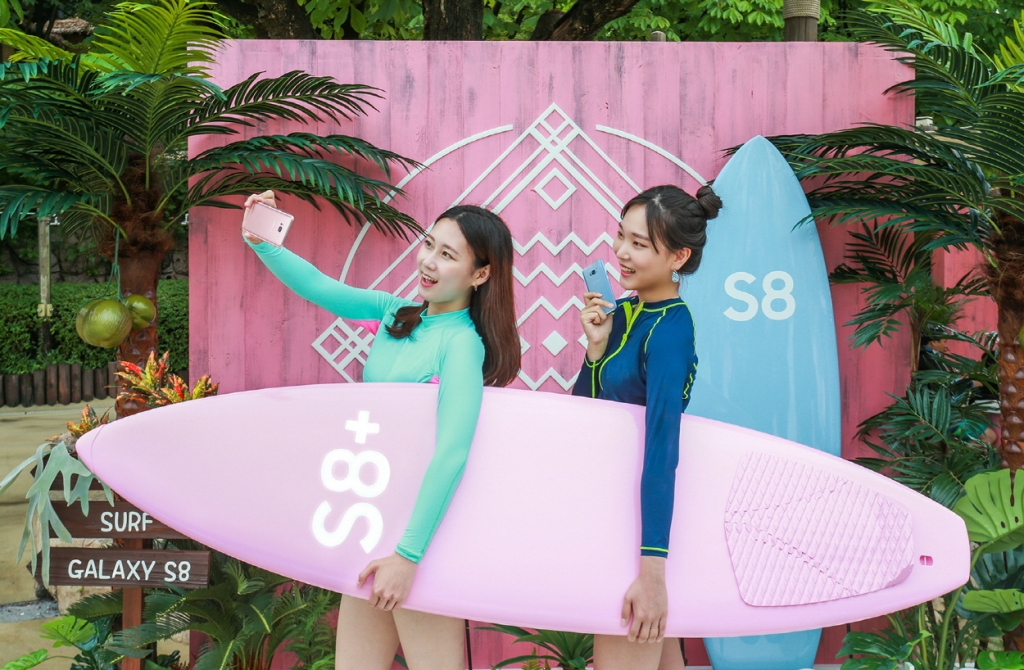 삼성전자는 최근 출시한 로즈 핑크와 코랄 블루 컬러로 꾸며진 '풀사이드 라운지'와 '서핑 포토존', 펀(Fun) 게임존' 등에서 갤럭시 S8∙S8+의 색다른 매력을 체험할 수 있는 다양한 이벤트를 진행한다.