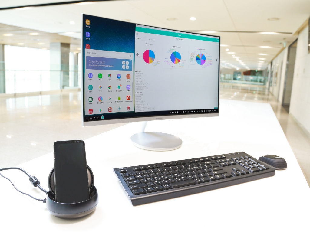 그룹웨어 구축 전문업체 다우기술이 개발한 ‘다우오피스’가 설치된 ‘갤럭시 S8·‘갤럭시 S8+’을 ‘삼성 덱스 스테이션’에 연결한 뒤 ‘다우오피스’ 앱을 실행하면 문서 편집, 메일 작성, 전자결재, 메신저 등 다양한 업무를 모니터 대화면을 통해 마치 사무실에 있는 것처럼 쉽고 편리하게 처리할 수 있다.