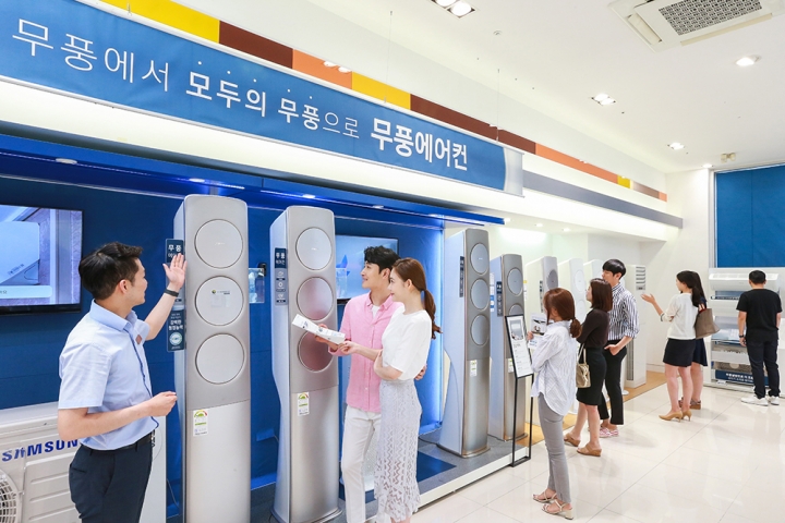 삼성전자는 최근 폭염이 지속되는 기간이 길어지고 무더위가 빨리 시작되는 등 계절적 요인도 있었지만 작년 1월 출시 이후 에어컨 시장에 돌풍을 일으키고 있는 ‘무풍에어컨’의 판매 호조가 큰 몫을 했다고 밝혔다.