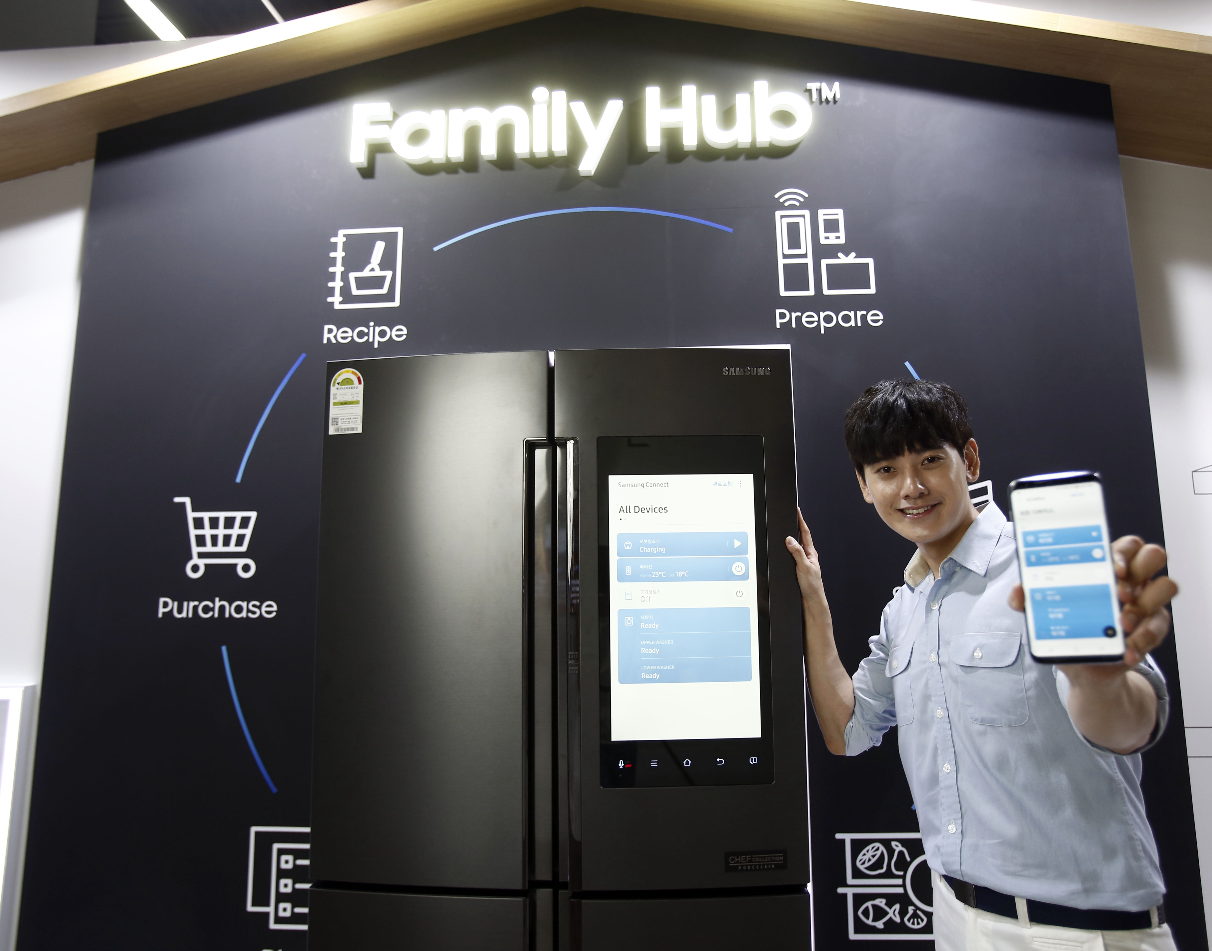 삼성전자의 전시부스 명칭은 ‘삼성 패밀리허브 냉장고를 중심으로 한 Future Home’으로 패밀리허브를 중심으로 플렉스워시 세탁기, 무풍에어컨, 블루스카이 공기청정기 등 스마트 가전 제품들을 연결해 관람객이 미래 생활상을 직접 체험해 볼 수 있게 스마트홈 시나리오를 구성했다.