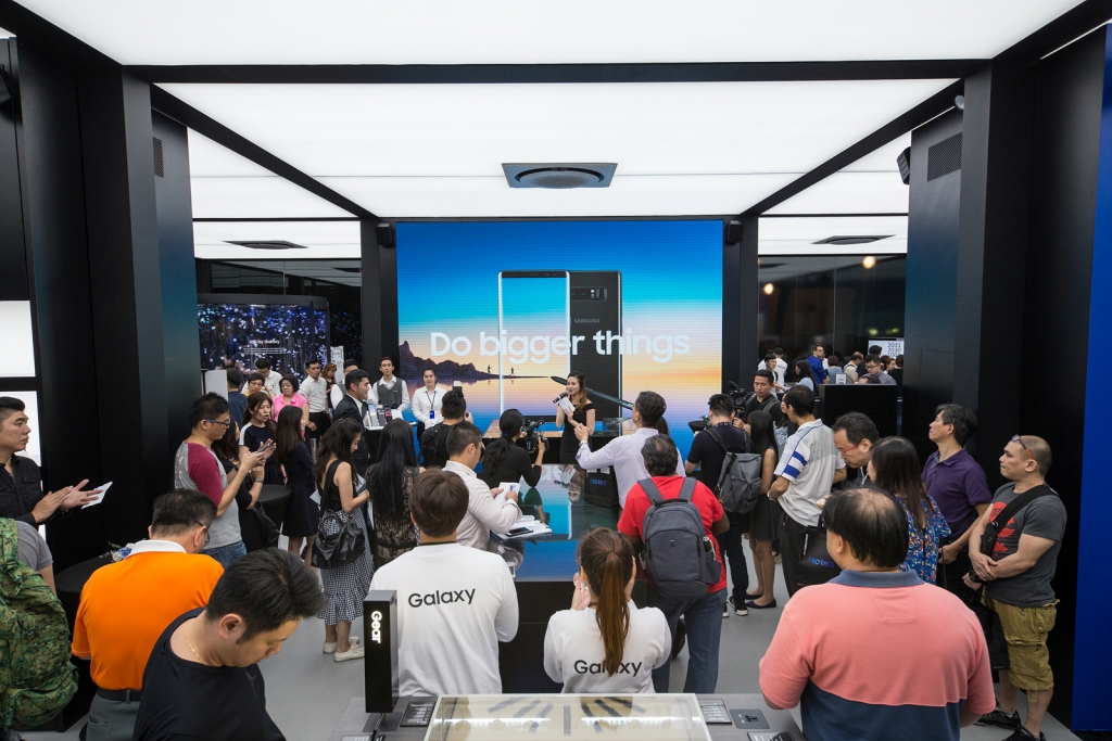 삼성전자는 9일(현지시간) 싱가포르의 상업 중심지 비보시티(VIVO CITY)에 갤럭시 스튜디오를 오픈하고 현지 소비자들에게 갤럭시 노트8을 선보였다.
