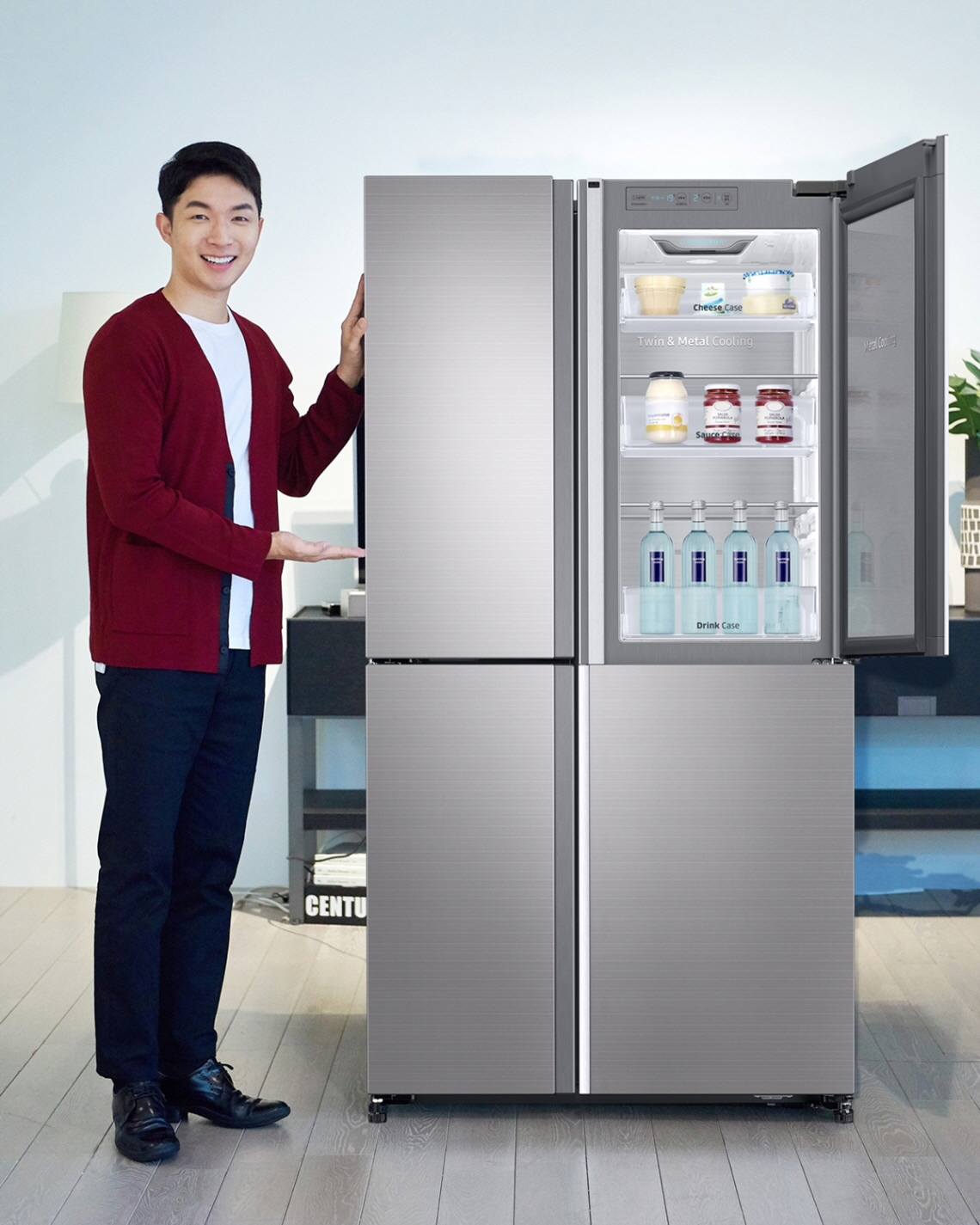 특히 냉장실은 바깥쪽에 상·하로 구분된 쇼케이스, 안쪽에 인케이스 도어가 있는 구조(3도어)로 소비자들이 선호하는 삼성 냉장고만의 장점인 쇼케이스를 적용해 수납 편리성을 극대화 했다.