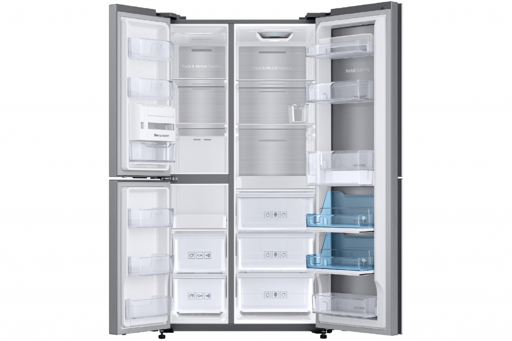 특히 냉장실은 바깥쪽에 상·하로 구분된 쇼케이스, 안쪽에 인케이스 도어가 있는 구조(3도어)로 소비자들이 선호하는 삼성 냉장고만의 장점인 쇼케이스를 적용해 수납 편리성을 극대화 했다.