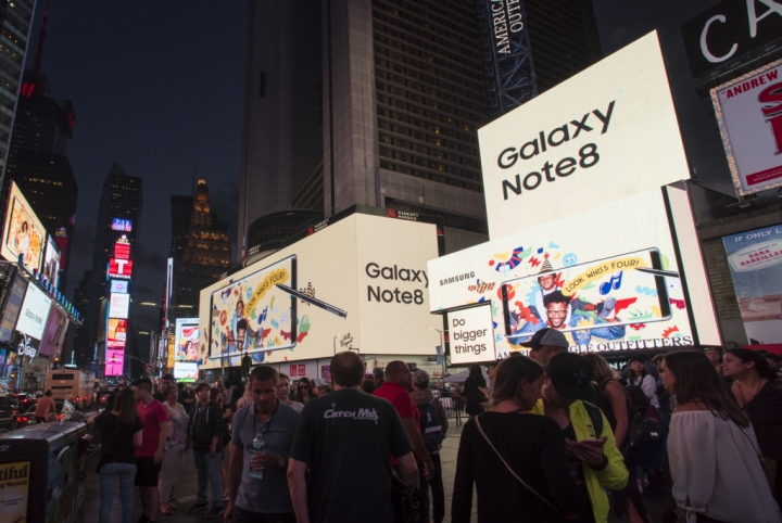 삼성전자가 '갤럭시 노트8' 출시에 맞춰 전 세계 주요 도시에서 옥외광고를 진행하고 있다.