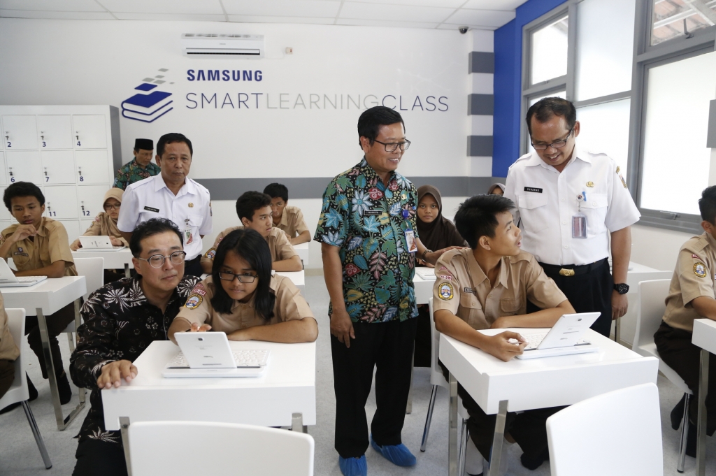 ▲ 지난 10월 삼성전자가 인도네시아 자카르타에 위치한 영재고등학교인 'MH 땀린(MH Thamrin)’에 '삼성 스마트 러닝 클래스’를 개설해 학생들에게 코딩 교육을 지원하고 있다.
