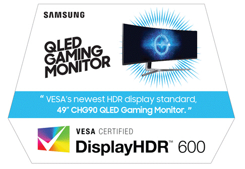 ▲ 삼성 QLED 게이밍 모니터 CHG90 제품과 VESA의 '디스플레이HDR' 인증 로고