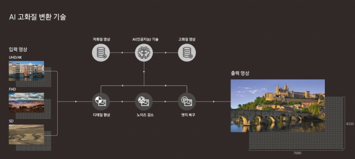 삼성의 AI 고화질 변환 기술은 입력 영상과 출력 영상을 비교해 고화질 영상으로 변환 시 발생하는 계조(Gradation, 명암의 자연스러운 표현) 손실 없는 자연스러운 이미지를 만들어 주는 것이 특징이다.