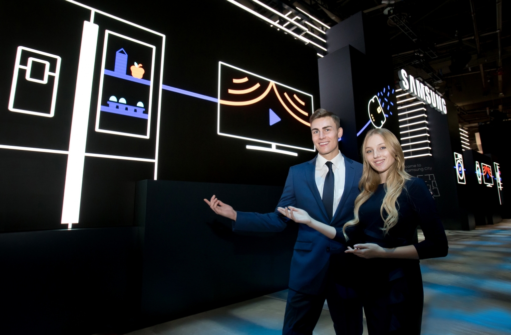 삼성전자는 참가 업체 중 가장 넓은 2,768㎡(약 840평) 규모의 전시관을 마련하고 ‘삼성 시티(Samsung City)’라는 콘셉트 하에 주거공간·사무공간·자동차 등 소비자의 일상에서 접할 수 있는 다양한 환경을 테마로 전시공간을 구성했다.