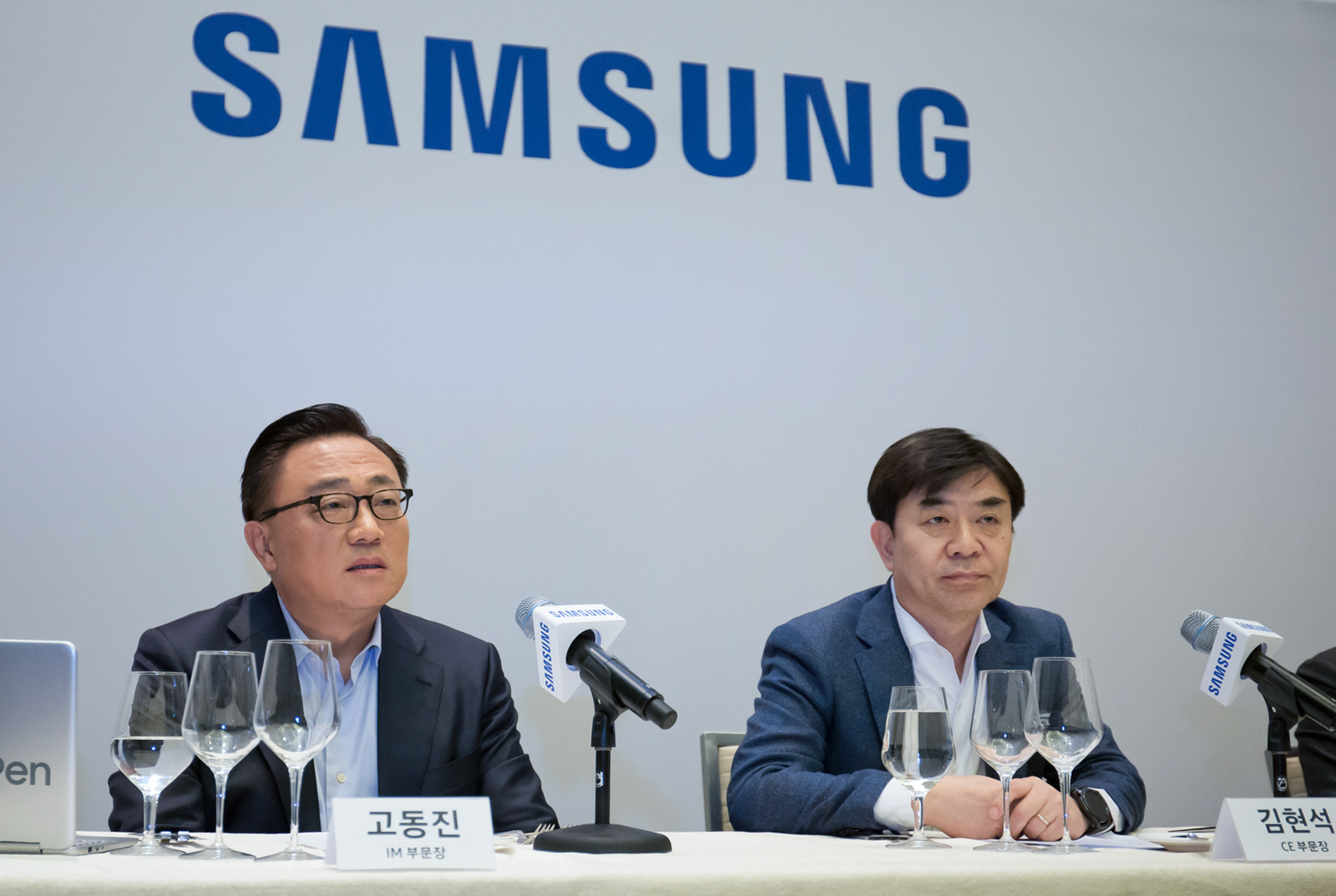 ▲(좌측부터) 삼성전자 IM부문장 고동진 사장, CE부문장 김현석 사장