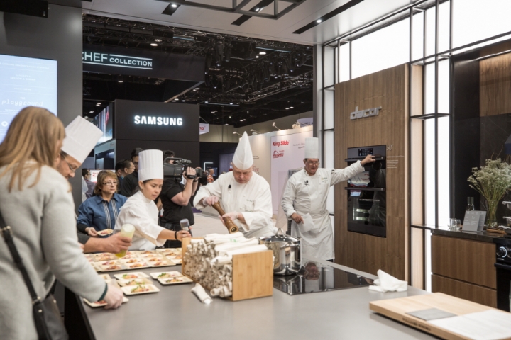 삼성전자는 스마트 기능을 강조한 프리미엄 빌트인 ‘셰프컬렉션’ 라인업을 비롯한 다양한 주방가전 패키지를 선보이며, 데이코는 최고급 빌트인 라인업 ‘모더니스트’와 ‘헤리티지’ 중심으로 전시에 참가했다. 삼성 ‘셰프컬렉션’은 기술력과 디자인이 조화된 라인업으로 세계적인 셰프들로 구성된 ‘삼성 클럽드셰프’ 의 인사이트를 제품 기획 단계부터 반영한 제품들이다. 특히, 셰프컬렉션 조리기기 4개 제품은 CES 2018 가전 부문 혁신상을 휩쓸며 삼성전자만의 차별화된 제품력을 입증받았다.