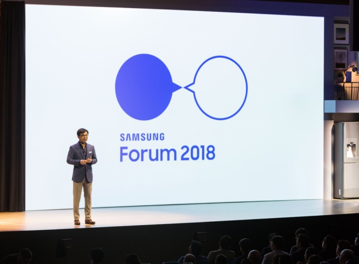 ▲ 삼성전자 CE부문장 김현석 사장이 6일(현지시간) 이탈리아 로마에서 열린 '삼성 포럼'에서 올해 주요 제품과 전략을 설명하고 있다.