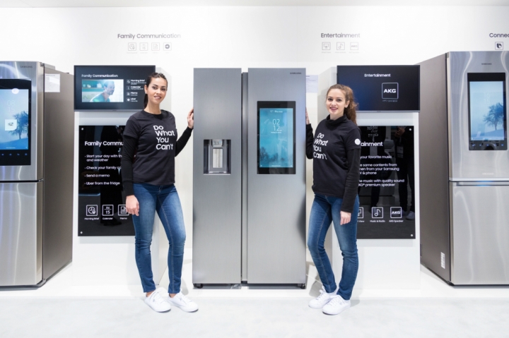 삼성전자는 전시부스에서 인공지능 플랫폼 ‘빅스비’ 등 삼성의 혁신기술이 모바일·스마트 TV·패밀리허브 냉장고를 비롯해 제 3자 기기 및 앱과 연동되고, 제어하는 시연을 펼쳤다. 삼성전자는 또한 주요 사업부문별 혁신 제품과 지역 특화 제품을 대거 공개했다.