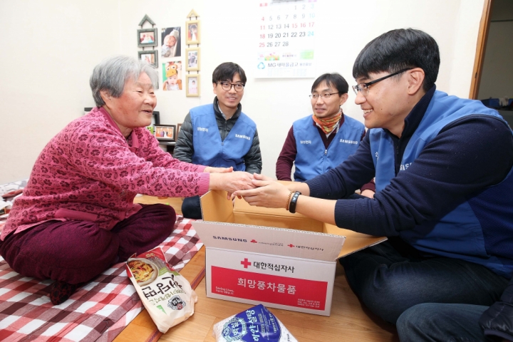 삼성전자는 2월 1일부터 14일까지 2주간 대한적십자사와 함께 전국 사회복지시설과 어려운 이웃들에게 10억원 상당의 부식품 세트를 전달했다.