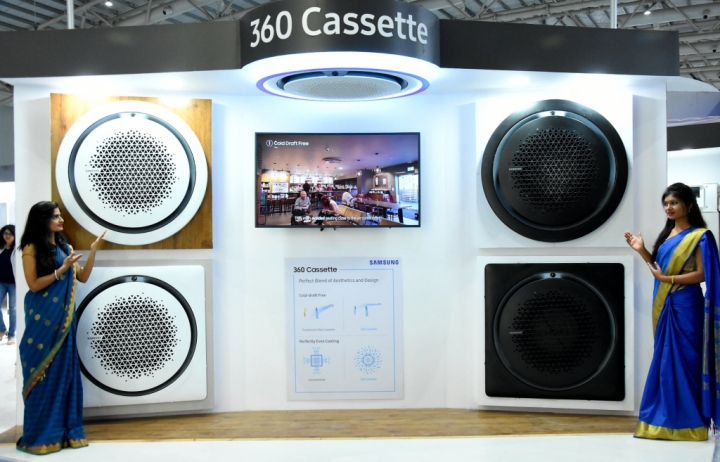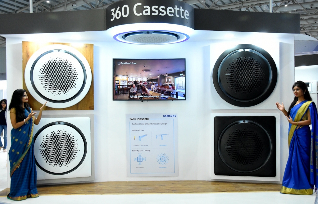 삼성전자는 이 전시회에서 바람이 직접 닿지 않는 ‘무풍 냉방’ 기술을 전기 사용량이 많은 상업용까지 확대한 ‘무풍 1Way·4Way 카세트(천장형 실내기)’와 ‘시스템에어컨 360’ 등 무풍에어컨 풀 라인업을 인도 시장에 선보인다.