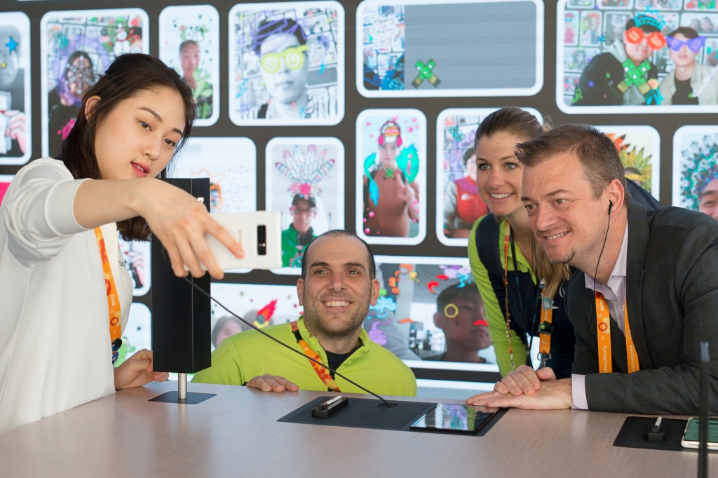 '서울 하상장애인복지관' 시각 장애인들이 강릉 올림픽 파크에 위치한 ‘삼성 패럴림픽 쇼케이스’에 13일 방문해, 최신 모바일 기술과 저시력인용 시각장애 보조 애플리케이션 ‘릴루미노(Relumino)’ 를 체험했다.