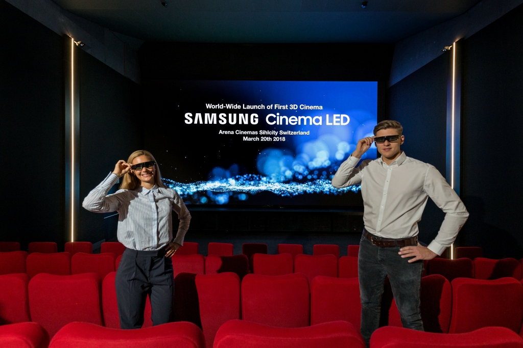 삼성전자는 20일(현지시간) 스위스 취리히 실시티(Sihlcity) 쇼핑몰에 위치한 아레나 시네마(Arena Cinemas)에 ‘3D 시네마 LED’ 스크린을 설치하고 개관 행사를 가졌다.