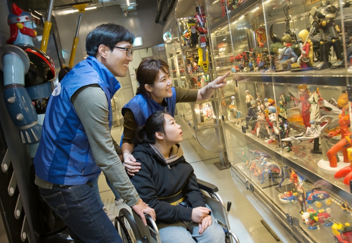 임직원들은 지난 24일 주몽재활원 장애어린이들과 함께 서울 상일동 ‘태권V 박물관’을 관람하고, 장애인들에게 스킨스쿠버 교육을 실시하는 한편, 수원 원천천에서 환경정화활동을 벌이는 등 다양한 봉사활동을 진행했다.