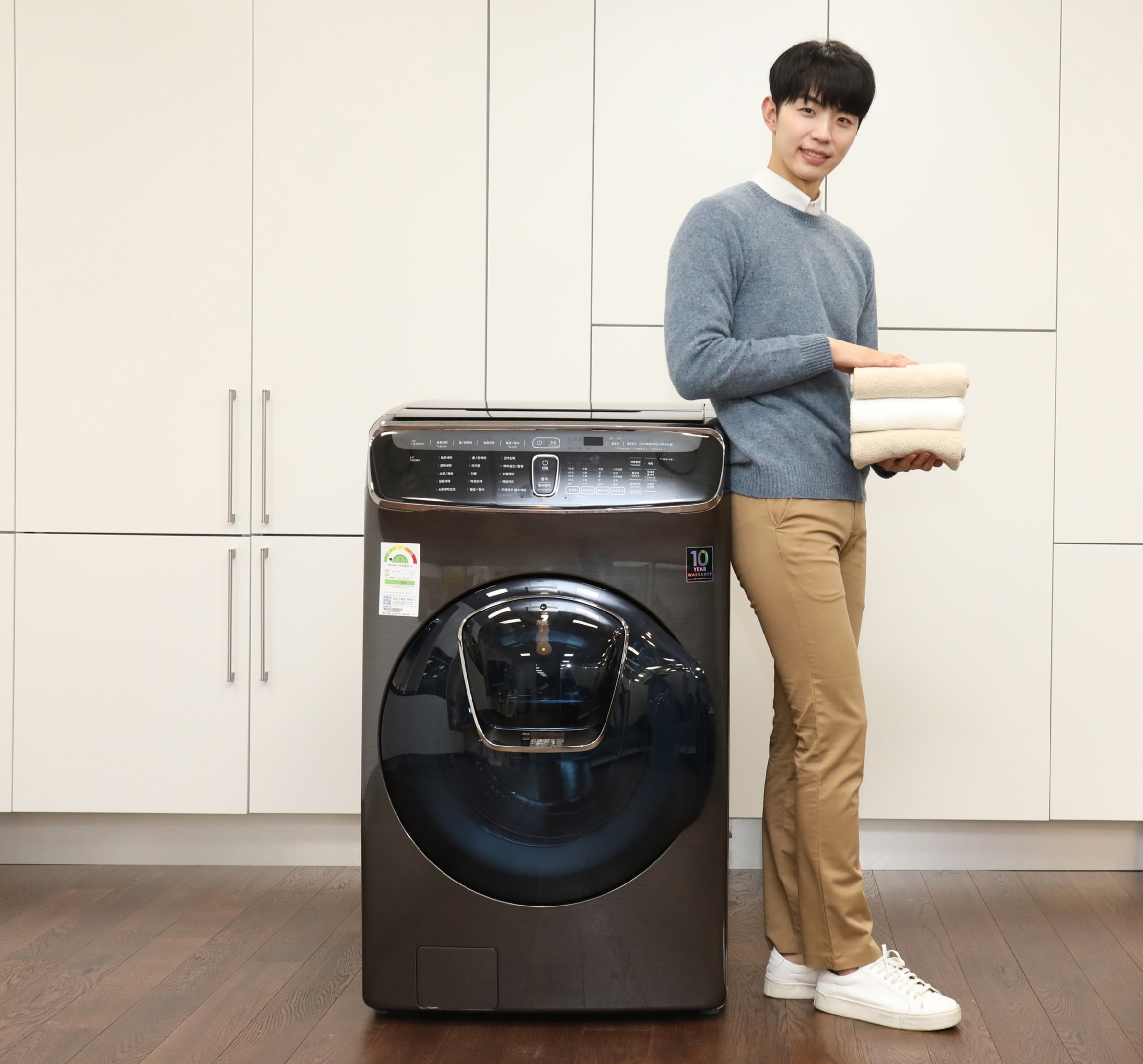 ‘플렉스워시’는 상부에 소용량 전자동 세탁기 ‘콤팩트워시’를, 하부에 대용량 드럼세탁기 ‘애드워시’를 일체형으로 결합한 제품으로 세탁물의 양·종류·색상 등에 따라 동시 또는 분리 세탁이 가능한 ‘3도어 올인원’ 세탁기이다.