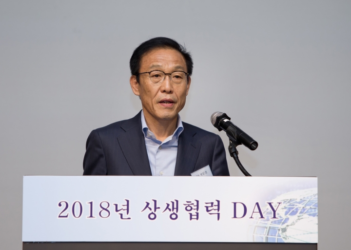 ▲ 6일 서울 양재동 더케이호텔에서 열린 삼성전자와 협력사가 모여 동반성장을 다짐하는 '상생협력데이' 행사에서 김기남 삼성전자 사장이 인사말을 하고 있다.