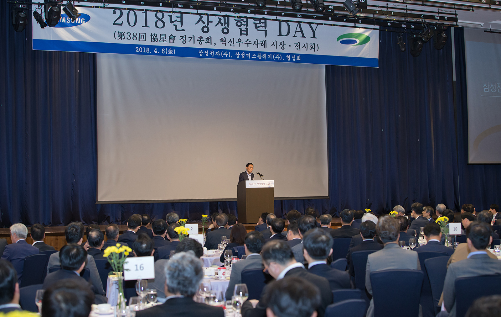 서울 양재동 더케이호텔에서 열린 이 행사에는 삼성전자 각 부문 대표이사인 김기남 사장, 김현석 사장, 고동진 사장, 경영지원실 노희찬 사장, 이동훈 삼성디스플레이 대표이사 사장 등 주요 경영진과 삼성전자 협력사 협의회(이하 협성회) 김영재 회장(대덕전자 대표이사)을 비롯한 190여개 협력사 대표까지 모두 240여명이 참석했다.
