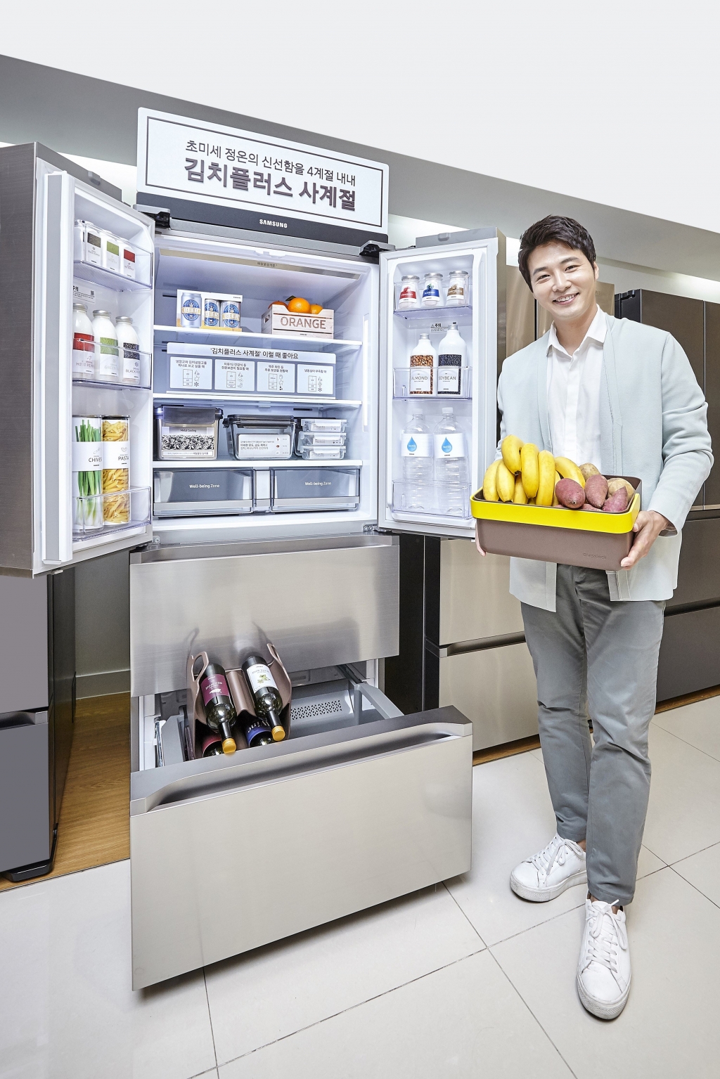삼성전자가 16일 서로 다른 보관 조건을 가진 다양한 식품을 계절에 상관 없이 연중 신선하게 보관할 수 있는 ‘김치플러스 사계절’을 출시했다.