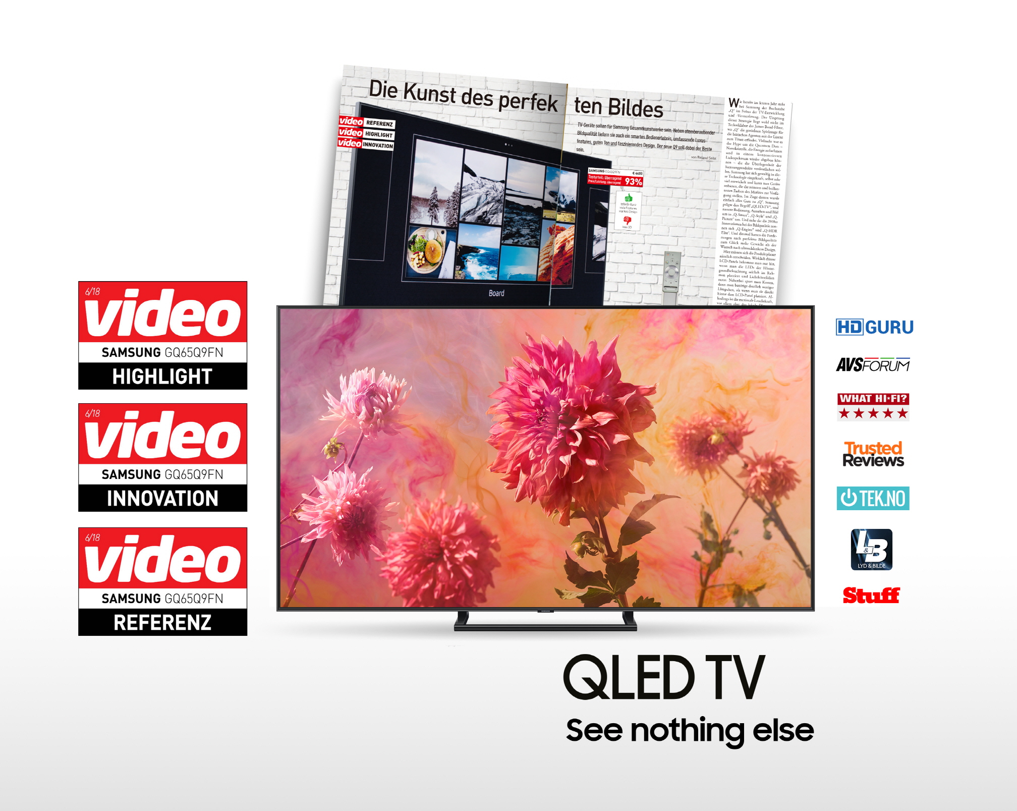 '비디오'지는 "완벽한 화질을 표현하는 기술(The Art of the Perfect Picture)"이라는 제목의 기사에서 삼성 QLED TV를 △화질 △디자인 △기능과 사용성 등 모든 면에서 뛰어난 올해 최고 TV로 소개했다.