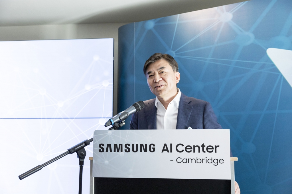 ▲ 22일(현지시간) 열린 영국 케임브리지 AI 센터의 개소식에서 삼성 리서치 소장을 겸임하고 있는 김현석 CE 부문 대표이사가 환영사를 하고 있다.